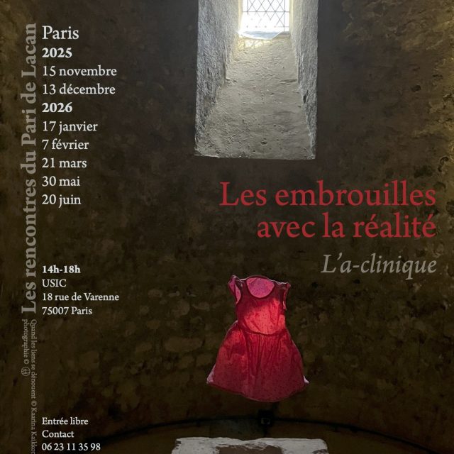 Ce pari ne renie pas les acquis que l’Association de Psychanalyse Jacques Lacan aura permis jusque dans sa dissolution : il redouble le pari du faire école et du supplémentaire, qui ont fait de l’Association de Psychanalyse Jacques Lacan une expérience dont nous continuerons à tirer enseignement. Il essayera de ne pas reculer devant les résistances que la psychanalyse rencontre immanquablement sur sa route, en inventant les modalités qui lui conviennent pour que l’analytique soit au chef de la politique dans notre communauté.