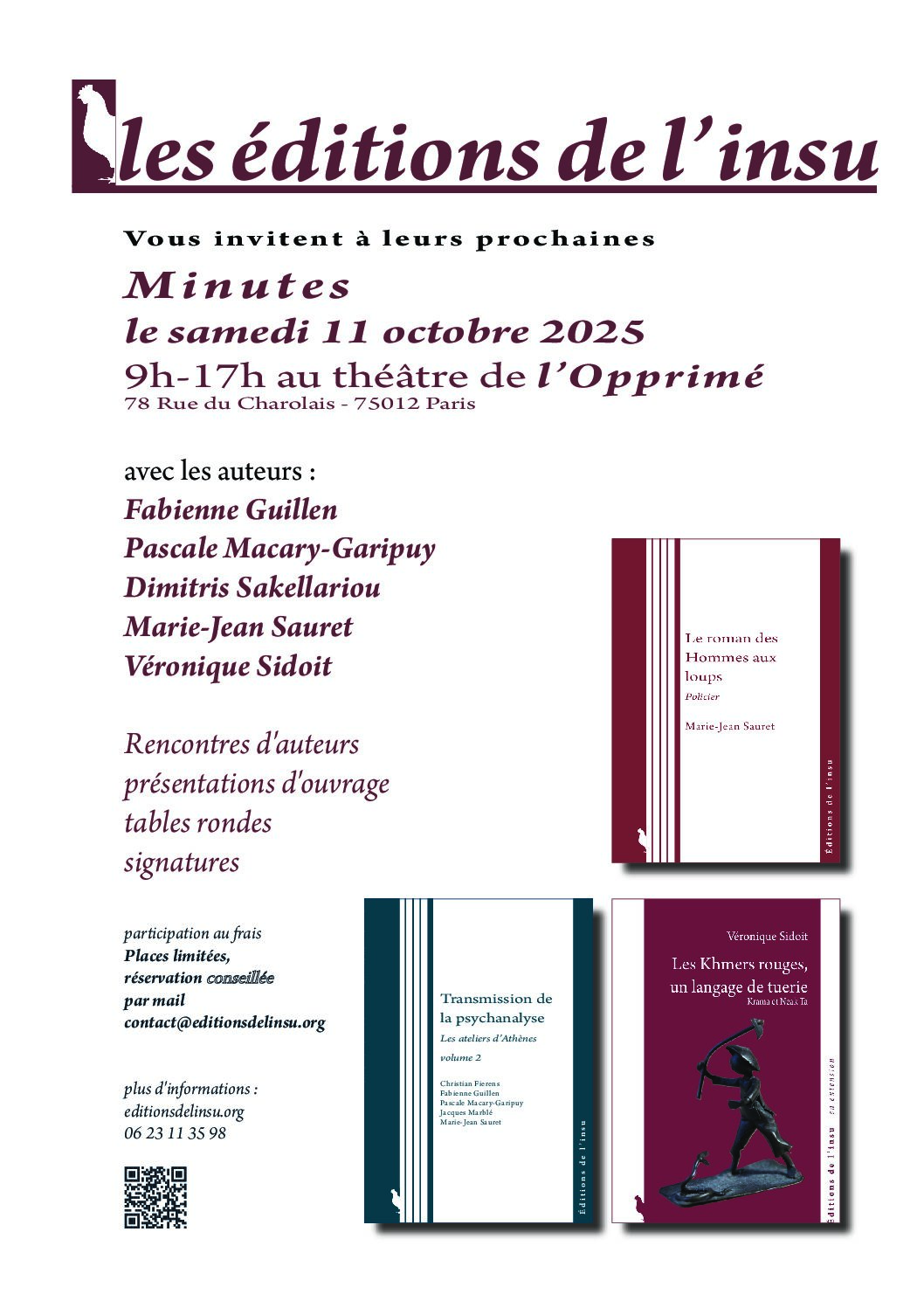 le samedi 11 octobre 2025 9h-17h au théâtre de l’Opprimé 78 Rue du Charolais – 75012 Parisplus d’informations contact@editionsdelinsu.org editionsdelinsu.org 06 23 11 35 98 |