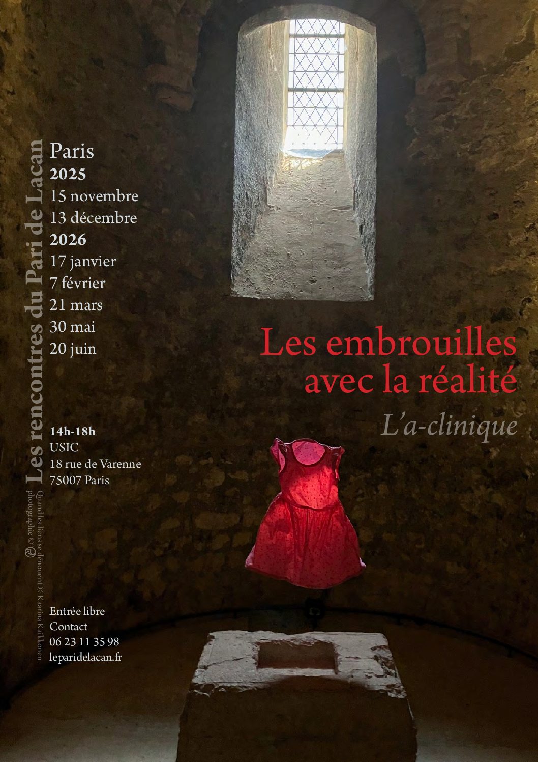 À la partition freudienne de deux réalités (la réalité matérielle, Realität et la réalité psychique, Wirklichkeit) qu’il récuse, Lacan oppose « le réel au principe de la structure ». Le réel, au début de son enseignement, c’est l’impossible, ce qui ne se laisse attraper ni par le symbolique ni par l’imaginaire. À la fin de son enseignement, le réel devient aussi l’impossible du rapport sexuel. Le réel, tout en restant inaccessible, est ce qui commande les symptômes du sujet, à son insu. Le réel est en mesure de mettre en évidence en quoi il leste la réalité. On s’y cogne grâce au signifiant, à travers les formations de l’inconscient, les symptômes, le fantasme, les rêves, ou ce qui cloche, etc. Dans trois des discours que Lacan a logifié, celui de l’hystérie, du maître et de l’universitaire, le réel flotte, en conséquence chacun règle à sa façon les embrouilles avec la réalité. Comme « le discours analytique est le seul où le réel ne flotte pas », une psychanalyse permet d’accéder à une réalité univoque, c’est dire qu’il n’y a qu’une réalité matérielle. L’expérience d’une psychanalyse permet de prendre en compte le réel, elle modifie la position du sujet à l’égard du savoir et de la jouissance…, l’impossible rend nécessaire de dire cet impossible. Comment, dans notre monde contemporain où le réel affleure, se débrouille-t-on avec les embrouilles de la réalité ?
